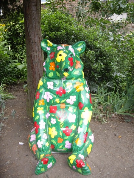 Meet Bernard Bear, sponsored by Jantex and painted by artist Jackie Clarke Bernard sits proudly up high on the garden infront of Jantex on Rood Hill