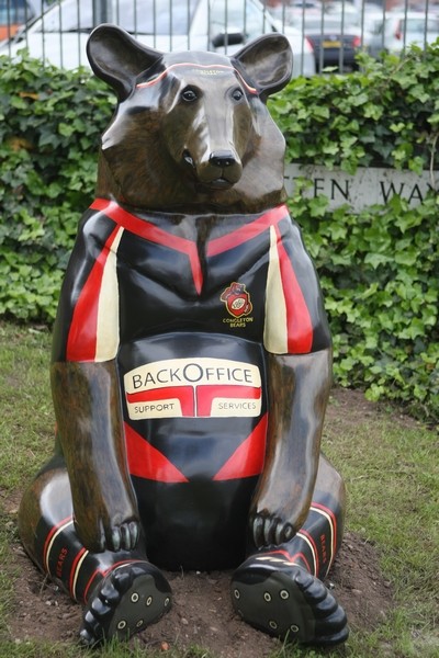 This is Rucking Grizzly – owned by Congleton Rugby Club and Back Office Supplies. He is marking the entrance to the Mountbatten Way as you come into Town from the Buxton/Biddulph roads. (some wanted a Scrummy bear..but that was too girlie!)
