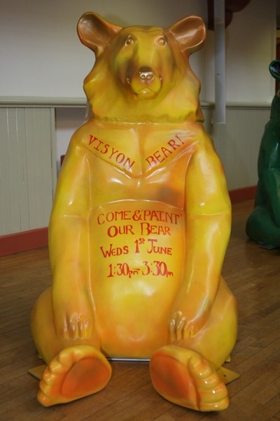 This is Visyon bear, sponsored by Dawn Gibbins, a patron of Visyon. This bear will be housed at the Congleton Paddling Pool in Park Street. Congleton Paddling Pool is open seven days a week, 10am – 6pm from May 28th – 1st week in September.